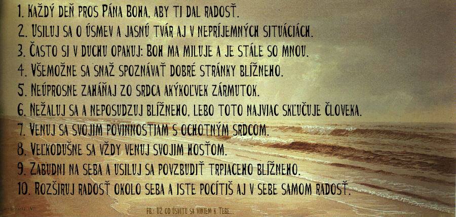 „Keď sa Ježiš vydával na cestu, ktosi k nemu pribehol, kľakol si pred ním a pýtal sa ho: „Učiteľ dobrý, čo mám robiť, aby som obsiahol večný život? Ježiš mu odpovedal: „Prečo ma nazývaš dobrým? Nik nie je dobrý jedine Boh. Poznáš prikázania: Nezabiješ! Nescudzoložíš! Nepokradneš! Nebudeš krivo svedčiť! Nebudeš podvádzať! Cti svojho otca i matku! Ale on mu povedal: „Učiteľ, toto všetko som zachovával od svojej mladosti.“ Ježiš naňho pozrel s láskou a povedal mu: „Jedno ti ešte chýba. Choď, predaj všetko, čo máš, rozdaj chudobným a budeš mať poklad v nebi. Potom príď a nasleduj ma!“ On pri tomto slove zosmutnel a odišiel zarmútený, lebo mal veľký majetok.“ (Mk 10,17-22)