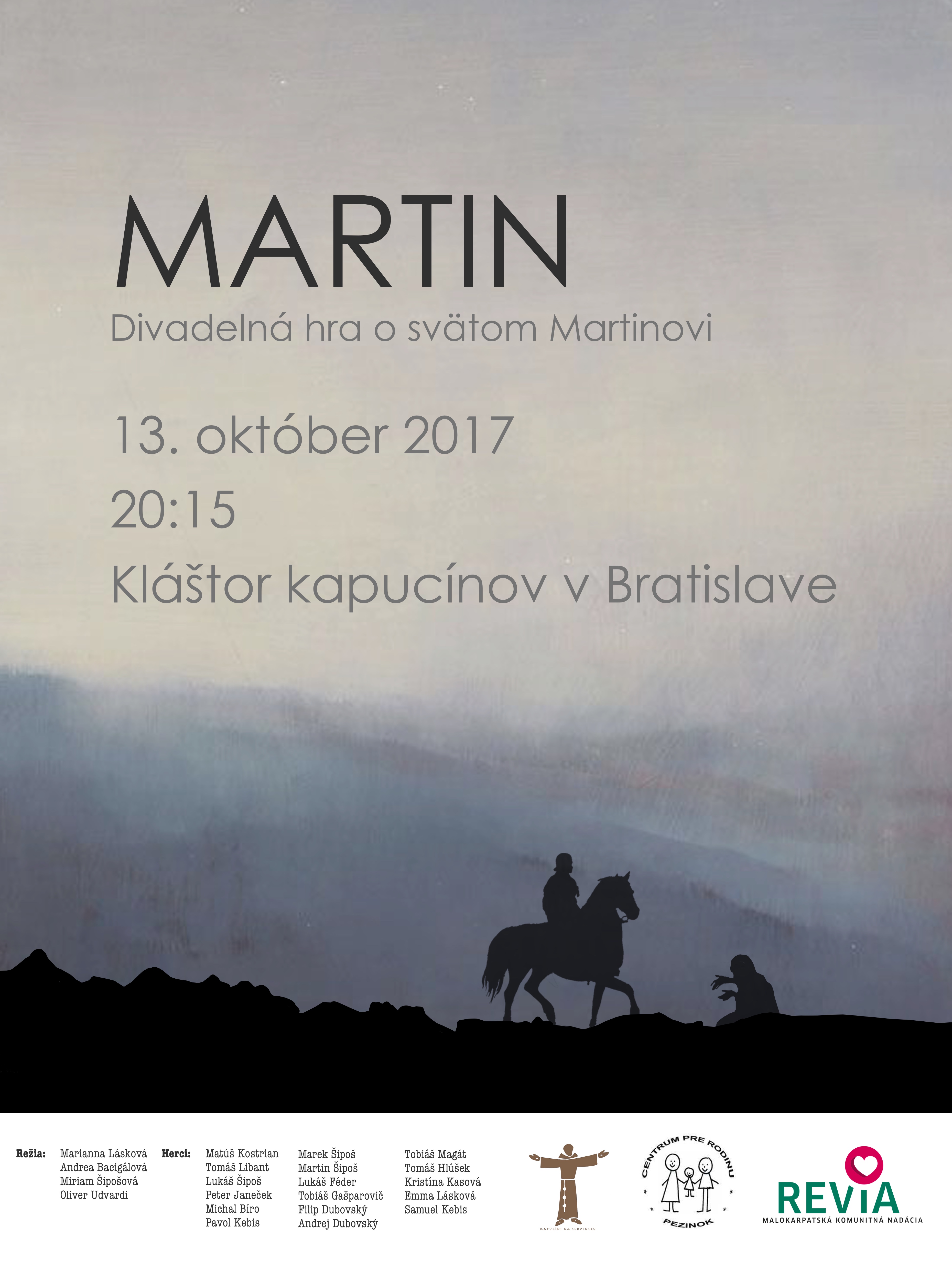 Z príležitosti roku svätého Martina pezinské spoločenstvo mladých pozýva na divadelnú hru o živote sv. Martina z Tours s názvom "MARTIN". Divadelné predstavenie sa uskutoční v piatok 13. októbra o 20:15 hod. v kláštore kapucínov v Bratislave. Viac informácií nájdete v prílohe alebo aj na FB.